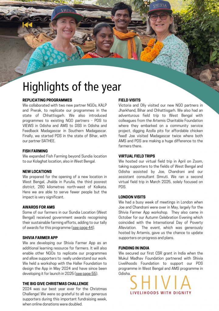 • I have witnessed first-hand how Shivia has not just changed but transformed people's lives with its livelihood programmes.